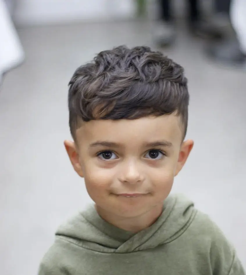 Untuk anak yang memiliki rambut keriting alami, jangan ragu memilih french crop versi curly. Potongan ini membiarkan bagian atas rambut keriting tetap menonjol dengan poni pendek yang bertekstur lembut.